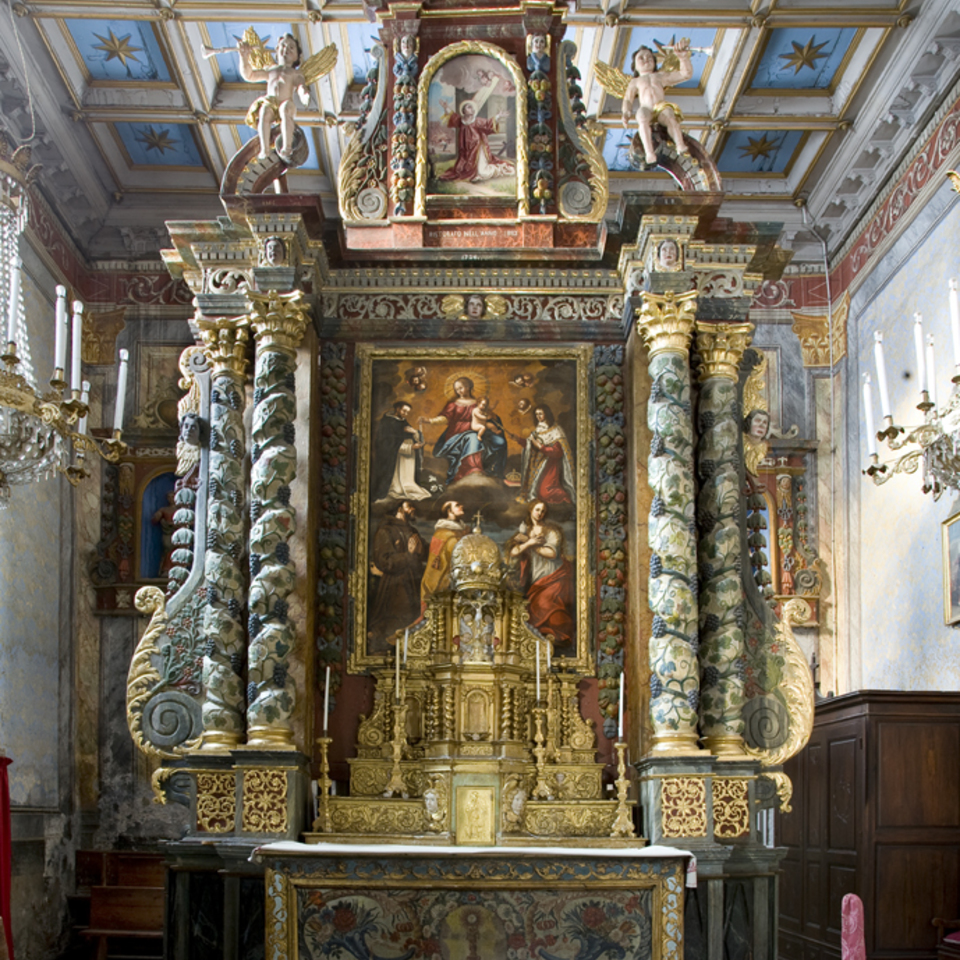 La chiesa di Sant'Antonio, sede parrocchiale dal 1459 al XVII secolo, è posta all'imbocco dell'antica via di Francia, detta Chemin Royal, non lontano da quello che fu l'insediamento dei Cappuccini impegnati nella predicazione contro la diffusione della Riforma protestante. La facciata a vela, cui è addossato il protiro d'ingresso, culmina in un imponente campanile. L'edificio custodisce un notevole patrimonio di decorazioni di epoca medievale: si segnalano in particolare gli affreschi recentemente affiorati del Giudizio Universale, opera databile tra XIV e XV secolo di pittore francese.