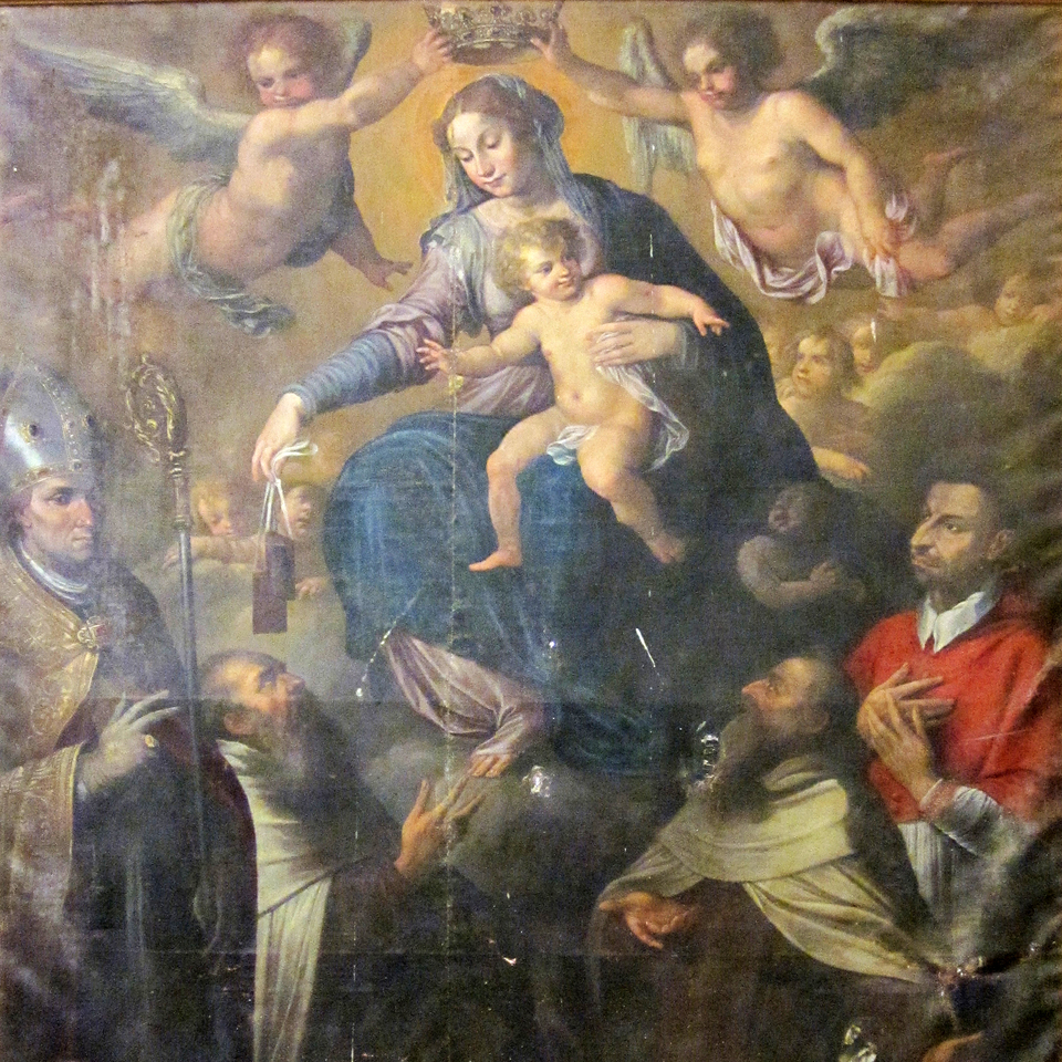 Tra le opere del periodo barocco si può osservare l’altare maggiore addossato alla parete di fondo. Il restauro del 2018 ne permette ora una corretta lettura e ha riportato alla luce la data di realizzazione: nel timpano dell’edicola si legge “1681”. L’ancona lignea risalta nel suo colore blu originario, è riccamente ornata con teste di putti, intagli dorati e due coppie di colonne tortili che incorniciano la tela raffigurante l’Assunzione della Vergine e santi, datata 1702. Sul lato sinistro dell’edificio vi è l’unica cappella laterale che ospita un altare simile al maggiore nella forma, ma più modesto per le dimensioni e l’ornamentazione, dedicato alla Beata Maria Vergine della Concezione e realizzato intorno al 1702, data in cui fu nominata la compagnia delle Donne Umiliate presso questa cappella. La pala d’altare raffigura la Vergine Immacolata con Sant’Antonio da Padova a sinistra e un altro santo a destra. Sulla tribuna si conserva ancora uno scanno ligneo realizzato nel 1672, decorato con tre colonnette con capitelli corinzi, due mascheroni, putti ed elementi vegetali. Vi è, infine, una grande tela rappresentante la Madonna del Carmelo con il Bambino mentre porge lo scapolare a due padri carmelitani, San Simone Stock e Alberto degli Abati, affiancati l’uno