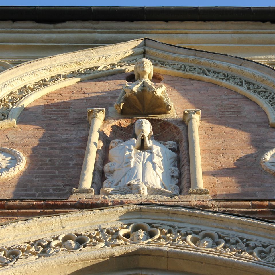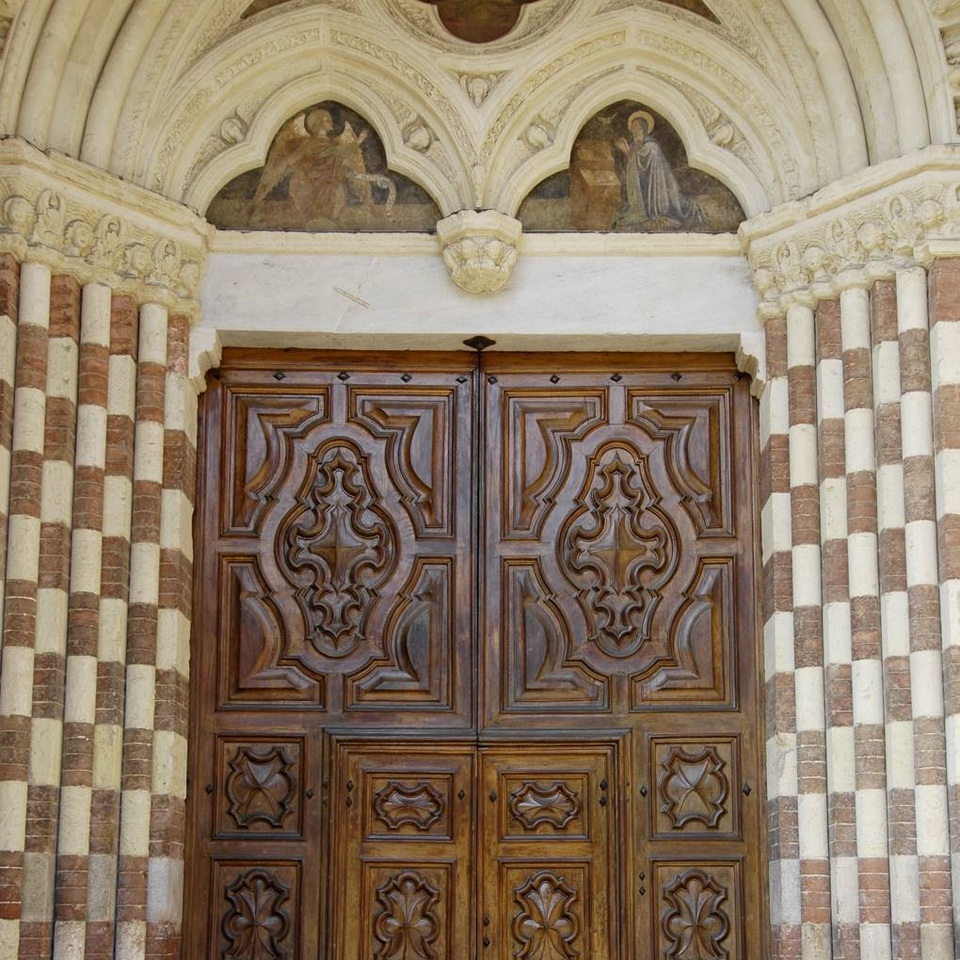 La Cattedrale gotica di Asti è il risultato di tre ricostruzioni succedutesi nell’arco di settecento anni; è realizzata in cotto e tufo, con zone di decorazione policroma, con mattoni alternati a pietre arenarie. La facciata a salienti è a due ordini; l’ordine inferiore ospita tre portali con ghimberghe, dei quali solo quello centrale risulta ancora aperto; gli altri vennero murati nel 1711 su disposizione del vescovo Milliavacca per consentire la decorazione ad affresco della controfacciata ad opera di Francesco Fabbrica, che ricorda quando, nel 1095, papa Urbano II, alla presenza del vescovo Oddone, consacrò solennemente la Cattedrale romanica. Lungo il fianco meridionale della Cattedrale si trova il Portico Pelletta principale accesso alla chiesa. Il campanile romanico a base quadrata, originariamente a sette piani ora a sei, risale al 1266. All’interno la pianta è a croce latina a tre navate intervallate da pilastri a fascio quadrilobati con capitelli terminali che riportano, quelli della navata centrale, lo stemma episcopale del vescovo francese Arnaldo de Rosette a cui con molta probabilità si deve l’inizio della vera e propria ricostruzione dell’edificio nel 1327. All’intersezione della navata centrale con il transetto si innalza il tiburio a sezione ottagonale. Il presbiterio di forma rettangolare allungata si restringe verso l’abside pentagonale scandito da cinque alte finestre ed ospita un mosaico pavimentale policromo databile tra il XII ed il XIII sec. Il presbiterio e l’abside sono il risultato di un innalzamento delle forme romaniche realizzatosi nel 1762 durante il vescovado di Mons. Caissotti su progetto dell’architetto Bernardo Vittone e direzione lavori dell’arch. ed ingegner Giovanni Peruzzi. Al di sotto del coro si trova la “cripta dei vescovi” dove sono stati rinvenuti resti architettonici di epoca romanica. La Cattedrale è dotata di due organi uno opera di Liborio Grisanti, costruito nel 1768 e l’altro dei fratelli Serassi, risalente al 1844.