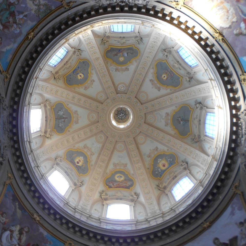 Il corpo principale della fabbrica risultò terminato nel 1768, un anno dopo si concluse anche la cupola su disegno attribuito da De Morani al capomastro Giovanni Battista Felli.