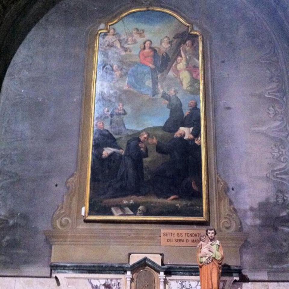 La devozione alla Vergine Addolorata si sviluppa a partire dalla fine dell'XI secolo, ma la sua storia ha un inizio preciso: il 15 agosto 1233, quando sette nobili fiorentini iscritti all’Arte dei Mercanti e poeti-attori della compagnia dei Laudesi, soliti esprimere il loro amore a Maria in laudi, la videro apparire addolorata e vestita a lutto per l'odio fratricida che divideva Firenze. Questi giovani gettarono le armi, istituirono la compagnia di Maria Addolorata, detta dei Serviti e si ritirarono in penitenza e preghiera sul Monte Sanario.