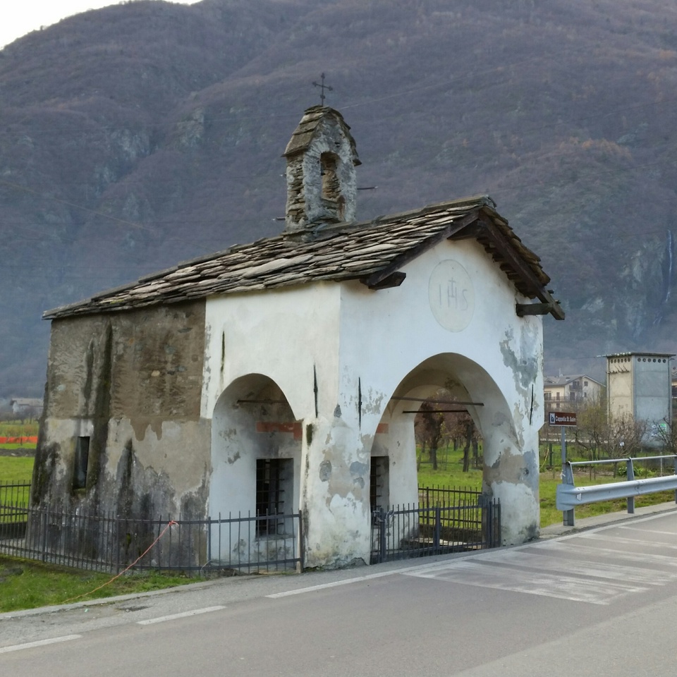 Sulla strada che collega Verrés a Issogne si trova una piccola cappella caratterizzata da una particolare architettura, col tetto che si prolunga oltre il corpo principale, formando una sorta di portico retto da due massicce colonne. Si tratta della più antica cappella valdostana dedicata alla Santa Sindone, la cui costruzione potrebbe risalire al tempo della sistemazione tardoquattrocentesca del castello. Ne farebbe fede lo stemma di Giorgio di Challant (1440 ca.-1509) che figura scolpito, accompagnato dal bastone priorale, sull’acquasantiera in pietra inserita in una delle suddette colonne.