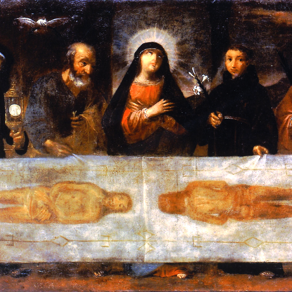 Tra i dipinti di particolare interesse si conservano ex voto a tema sindonico e un dipinto di Jean Claret datato 1664 raffigurante la Madonna coi santi Chiara, Giuseppe, Antonio e Barbara che espongono la Sindone.