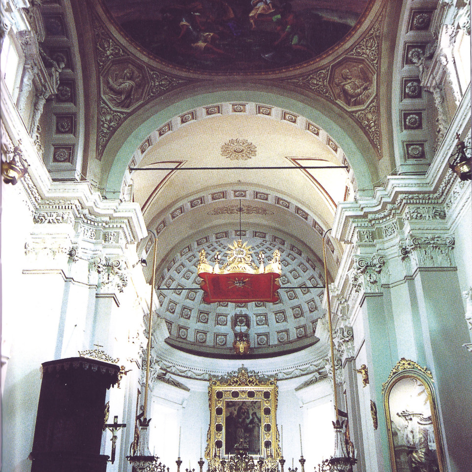 La chiesa di San Bernardino, detta comunemente dei “Battuti Bianchi” per l’abito che portavano i confratelli, è la più antica di Bene Vagienna. La storia della confraternita manca totalmente di documentazione ma è verosimile credere che si trovasse già all’atto di fondazione in Via Roma, nella sede in cui ancora oggi si sita. Nel corso dei secoli l’edificio è stato più volte trasformato e ampliato fino a raggiungere le dimensioni attuali con una pianta a croce greca, adorna di pregevoli statue e dipinti. Il ritrovamento sulla facciata della chiesa di un’iscrizione attesta l’antica dedicazione a Santa Caterina da Siena e a San Bernardino: è probabile infatti che in occasione del soggiorno a Bene Vagienna del Santo, ammesso dagli storici, si sia dato avvio alla costruzione o all’ampliamento dell’Oratorio della confraternita. Secondo le testimonianze poi del visitatore apostolico mons. Gerolamo Scarampi a fine Cinquecento la confraternita doveva essere composta da oltre trecento iscritti mentre nel 1739 la Compagnia di Santa Caterina venne aggregata a quella di Roma. Sul finire del Settecento la chiesa fu utilizzata per immagazzinarvi il fieno e nell’Ottocento si diede mano a notevoli lavori di ristrutturazione. Sono di questo secolo infatti la costruzione centrale dell’abside, del nuovo campanile, della balaustra dell’altare maggiore e del coro.