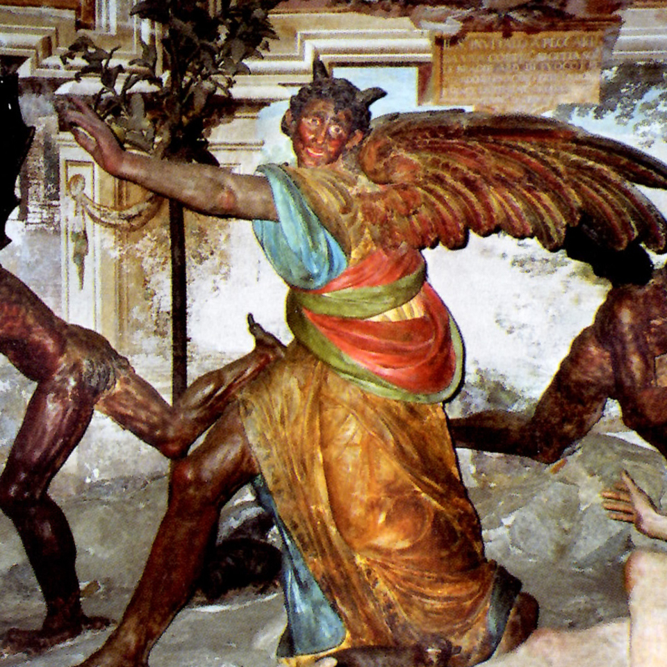 Tra le varie raffigurazioni artistiche della vita del santo a Orta, particolarmente interessante è il gruppo di otto statue che raccontano le Tentazioni di San Francesco conservate nella decima cappella. Esse sono opera di Antonio Pino da Bellagio di origini comasche e vedono come modello di riferimento, soprattutto per la tragicità, le rappresentazioni di Cristo sulla croce. Tutte le statue sono realizzate in terracotta, un unicum nella produzione di Pino, mentre non si conosce il nome dell’artefice che si è occupato della loro dipintura. Del Pino, annoverato al santuario del 1654, non si hanno notizie in merito alla sua formazione ma non è improbabile un suo alunnato nella bottega di Bartolomeo Tiberino con cui si nota una dipendenza tipologica.