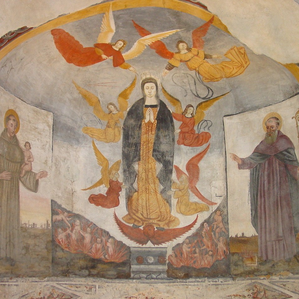 Nel catino absidale destro è raffigurata l'Assunta (XV sec.) con le anime del Purgatorio (XVI sec.)