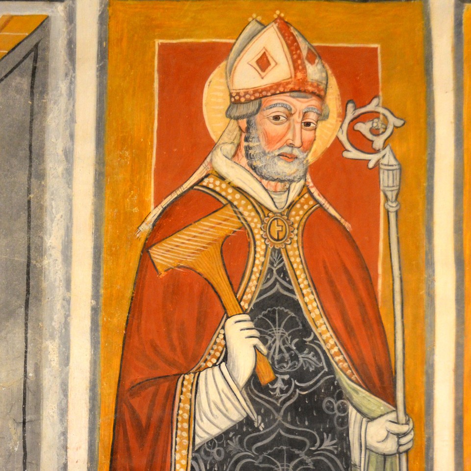 Si dice che il santo non partecipò alla battaglia ma si recò successivamente in quel luogo per chiedere i corpi dei martiri. Il permesso gli fu negato e dopo aver dormito proprio nel campo dove avvenne la battaglia, il mattino seguente, al risveglio vide l’erba macchiata del sangue dei martiri. Recuperò questa reliquia e la riportò in patria.