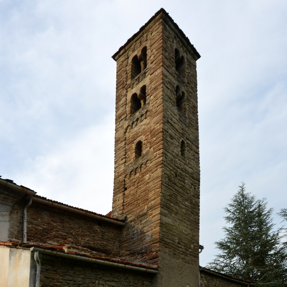 La cappella rustica, grigia nella sua muratura a vista di pietra arenaria locale, in blocchi a spacco irregolari, è voltata con botte e crociera sul presbiterio. Sul fianco destro si innalza il campanile eretto nella seconda metà del XI secolo; pericolosamente pendente, nel 1969 è stato pazientemente smontato pietra per pietra e ricostruito con grande perizia e fedeltà. Sovrappone i ripiani segnati da archetti pensili tra i contrafforti degli spigoli e si apre con piccole monofore e bifore, crescenti fino alla cella campanaria.