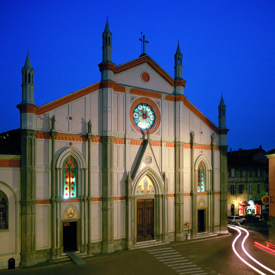 All’interno inoltre si possono ammirare una pregevole tela di Guglielmo Caccia detto il Moncalvo raffigurante l’Assunzione della Vergine, originariamente eseguita per la chiesa di San Bernardino di Carmagnola, e una ricca serie di opere lignee seicentesche, tra cui il pulpito e il coro, quest’ultimo opera di Giovanni Bartolomeo e Benedetto Tiffner e la scultura della Vergine Immacolata con Bambino dell’astigiano Michele Enaten, portata ogni anno in processione in occasione della festa dell’8 dicembre.
