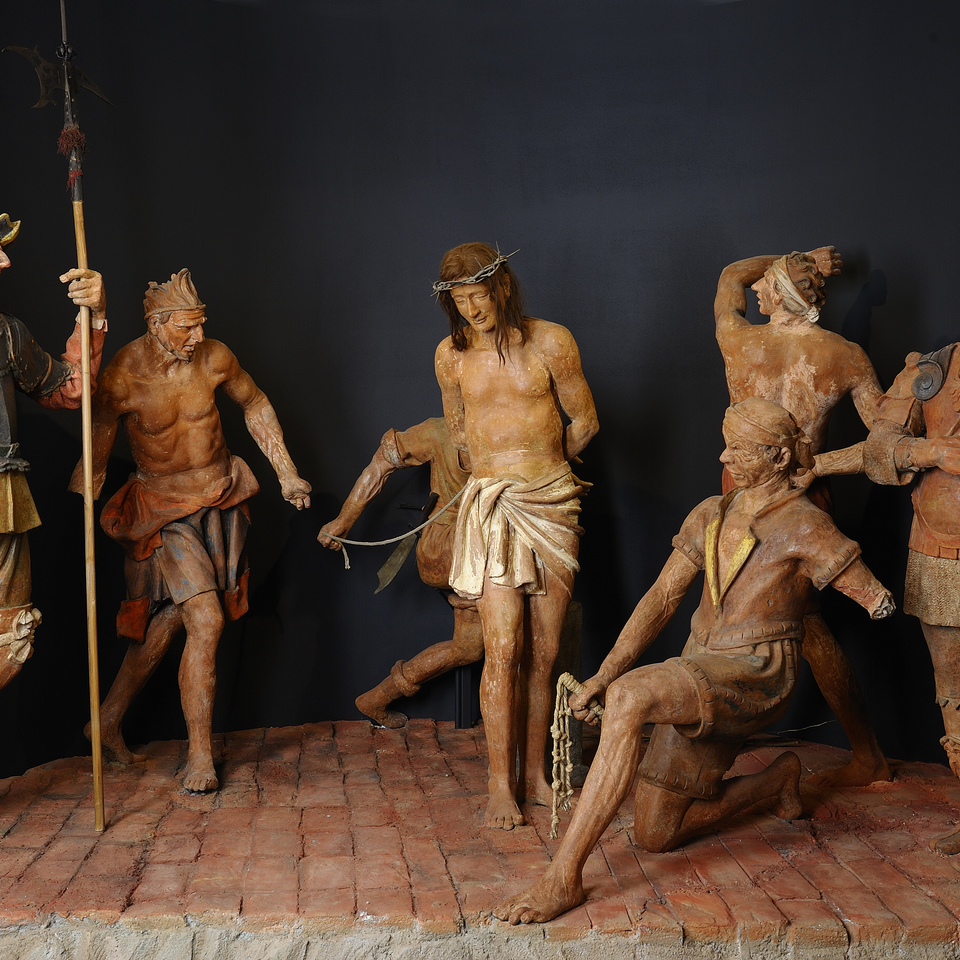 Il percorso inizia con i gruppi statuari del ciclo della passione di Cristo, di provenienza dal battistero del duomo [Sale n.1, 3 e 4]. Si tratta di cinque gruppi scultorei in terra cotta, che rappresentano momenti della Passione di Cristo. La sala detta dell’affresco [sala n.2], contiene frammenti dipinti del ciclo di Giuditta, attribuiti al pittore novarese Bartulonus (1460 ca.).