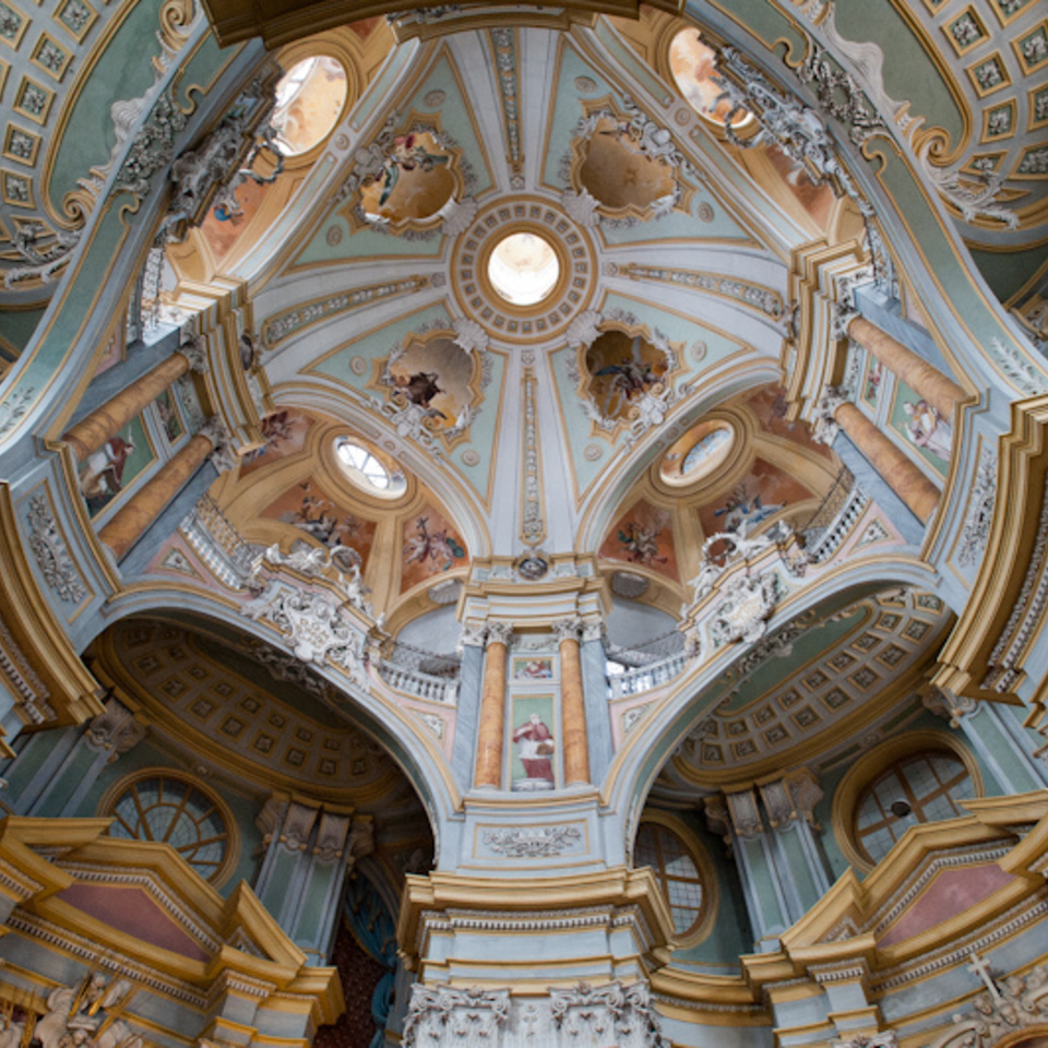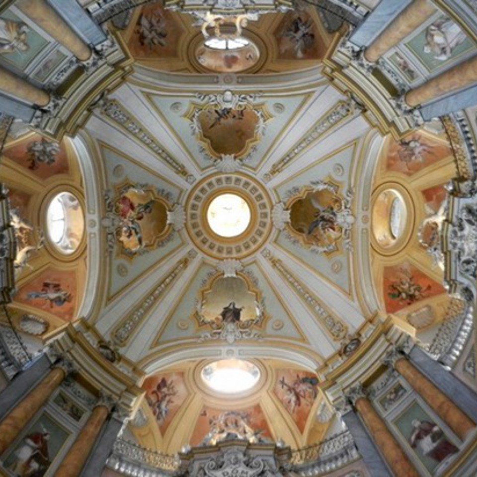 Di Pietro Paolo Operti (1704-1793), di origine braidese, sono gli affreschi della seconda volta, impreziosita dai giochi di luce realizzati grazie alle apertura della doppia cupola.