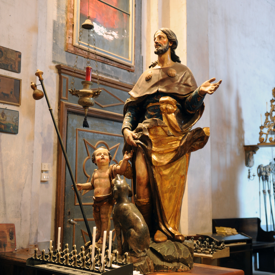 La chiesa conserva poi un ricco apparato di statue lignee tra cui quella di Maria Addolorata di Stefano Maria Clemente, quella di Sant’Antonio Abate di carattere tardo seicentesco, una Sant’Anna con Maria Bambina, espressione di una domestica teatralità, e un Sacro Cuore, entrambe di autore ignoto. Più tarda è invece la statua di San Rocco, datata al 1840.