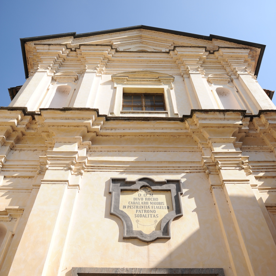 Poco distante dalla chiesa parrocchiale di San Michele si trova la confraternita di San Rocco. La sua origine risale al 1630 quando Cavallermaggiore era nuovamente funestata da una pestilenza ed il Comune, per sfuggire ai danni e alla morte causata dal contagio, eleggeva San Rocco a compatrono della Città, insieme a San Giorgio, San Sebastiano ed alla Madonna delle Grazie. Fu così eretto un piccolo oratorio, situato presso Porta Molina e costituita l’omonima confraternita che raccoglieva uomini e donne. A seguito dell’accresciuto numero di confratelli, si decise la costruzione di una nuova chiesa, il cui progetto fu affidato nel 1671 a Giovenale Boetto.