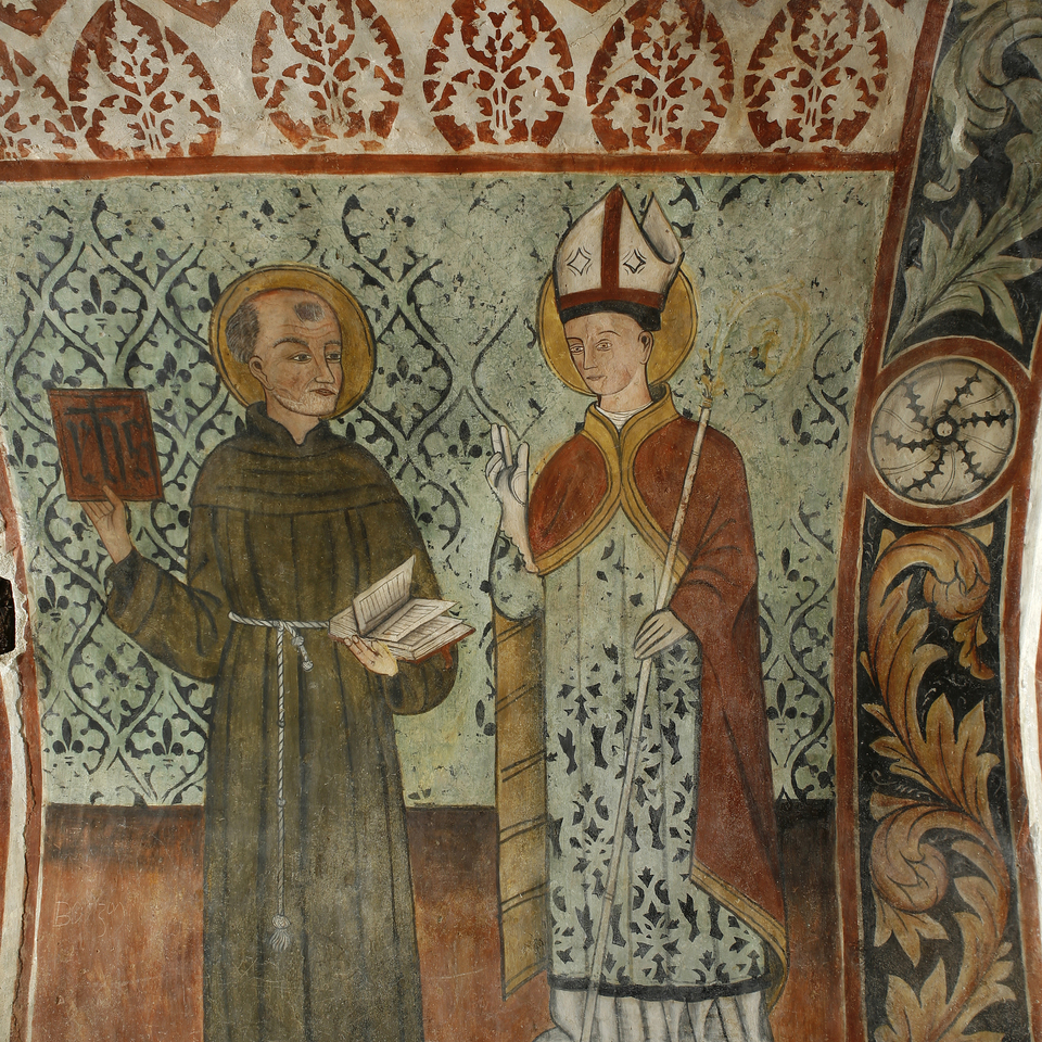 La cappella di San Pancrazio sorge in un’area boscosa al di fuori dal centro abitato: è stato ipotizzato che l’edificio sia stato eretto in coincidenza di una più antica area di culto dedicata a Vertumnus, dio dei campi e della natura, venerato dai Celti. San Pancrazio, raffigurato nell’abside a fianco della Madonna con Bambino, era un soldato romano, descritto dalle fonti come giovane e di bell’aspetto, vissuto sotto l’impero di Diocleziano. Pancrazio, convertitosi alla fede cristiana insieme allo zio Dionisio, rifiuta di giurare fedeltà all’imperatore, preferendo la fede in Cristo. Diocleziano ne ordina quindi la decapitazione. La cappella è officiata in occasione della festa patronale di San Pancrazio che cade il 12 maggio.
