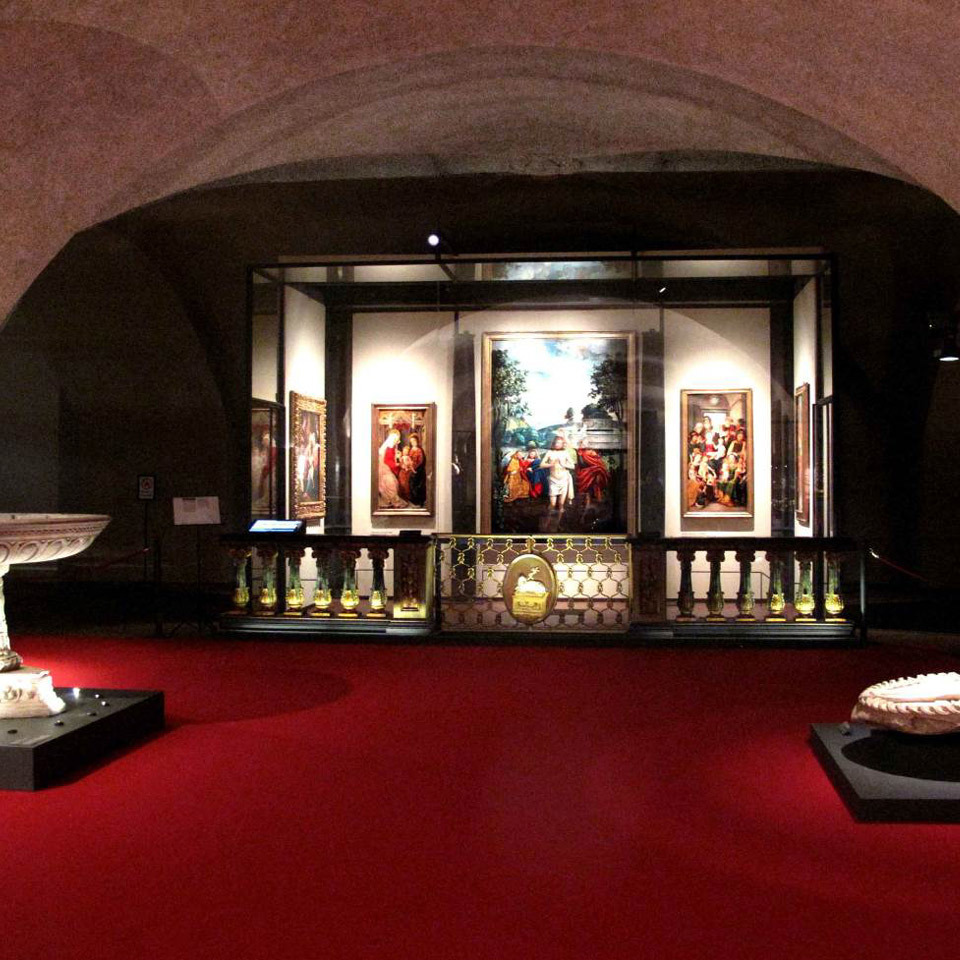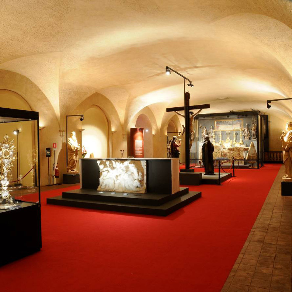 Il percorso espositivo del museo è stato concepito in modo che l’attenzione del visitatore si focalizzi su alcuni momenti particolarmente rilevanti dell’Evento cristiano, illustrati dalle testimonianze architettoniche, artistiche e archeologiche. Varcato l’ingresso, si inizia a ripercorrere le principali tappe della liturgia battesimale ed eucaristica nello sviluppo storico artistico. Di particolare importanza sono il quattrocentesco fonte battesimale della Cattedrale di Torino, il battistero annesso alla basilica del Salvatore, la tavola con il Battesimo di Cristo di Martino Spanzotti e Defendente Ferrari (1508) e le opere di oreficeria. Particolare attenzione va all’altare tridentino ricostruito in ogni sua parte con le suppellettili sacre utilizzate durante la celebrazione eucaristica: paramentali, paliotti, oreficeria e statuaria, tipici dell’arte barocca. Completano il percorso della sala principale il gruppo scultoreo ligneo della Crocefissione, la custodia eucaristica in marmo e il dossale d’altare in argento del XVIII secolo. In evidenza è anche la devozione mariana, testimoniata non solo dalle sculture e dagli ex voto ma anche dall’altare dedicato alla Madonna del Rosario. Conclude la visita al Museo la pinacoteca dove sono conservate pale e dipinti riferiti alla devozione popolare della Madonna. Collocate a partire dal XII secolo sopra la mensa dell’altare, esse, avevano il compito di celebrare la figura di Cristo, della Vergine o del Santo a cui era dedicata la chiesa.