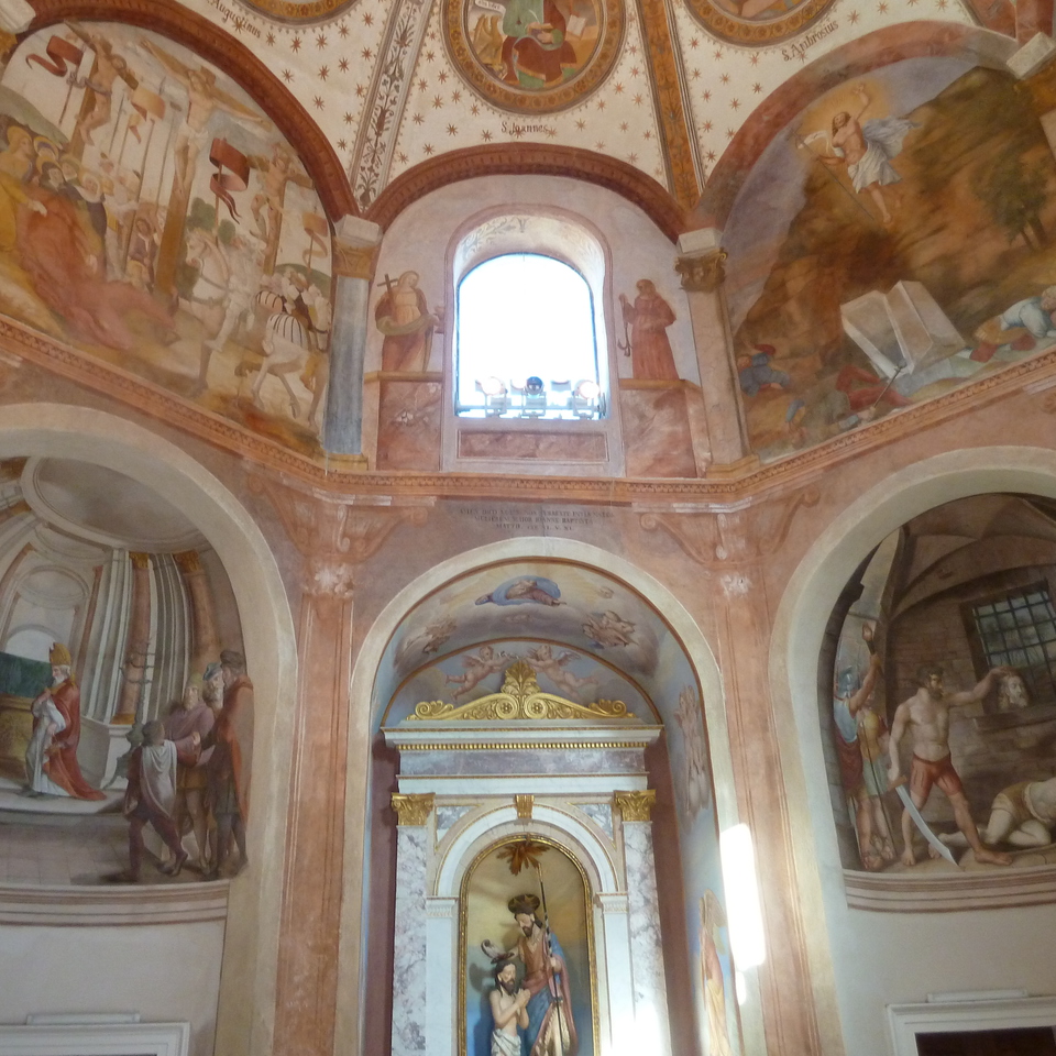 Le sovrastrutture, le aggiunte del triportico secentesco e della sacrestia settecentesca, l’intonaco che lo riveste completamente e le decorazioni esterne con lesene e cordonature, inducono a una datazione di epoca rinascimentale con aggiunte barocche. Ma un’osservazione più attenta rivela ben più antiche origini. Il tiburio ottagonale, ai cui lati si aprivano delle finestre, sostiene all’interno una volta a spicchi con costoloni ad arco ribassato del XII secolo, poggianti su mensole romaniche decorate. Approfonditi studi svolti negli anni Settanta relativi alla parte inferiore dell’edificio ci riportano a un’origine ancor più antica, legata alla prima evangelizzazione del territorio. La presenza del battistero e la dedicazione dei martiri milanesi Gervaso e Protasio rendono probabile l’esistenza sin dal V secolo di una pieve comprendente tutto il territorio sudoccidentale del Lago Maggiore. La pianta quadrata all'esterno cui corrisponde all’interno un ottagono con nicchie alternativamente rettangolari e semicircolari, ricavate nello spessore del muro si rifà a edifici analoghi del V e VI secolo ispirati agli antichi mausolei costantiniani che i cristiani trasformano da luoghi di morte in luoghi di vita.