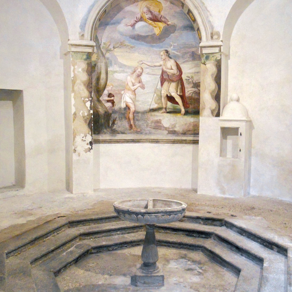 Il battistero venne consacrato durante il vescovato di Litifredo, tra il 1122 e il 1151. Secondo alcuni autori è verosimile ipotizzare la preesistenza nel luogo di un sacello romano. Inoltre, è possibile che in corrispondenza del pavimento centrale, ribassato ed al quale si accede tramite tre gradini, vi fosse una vasca ad immersione.