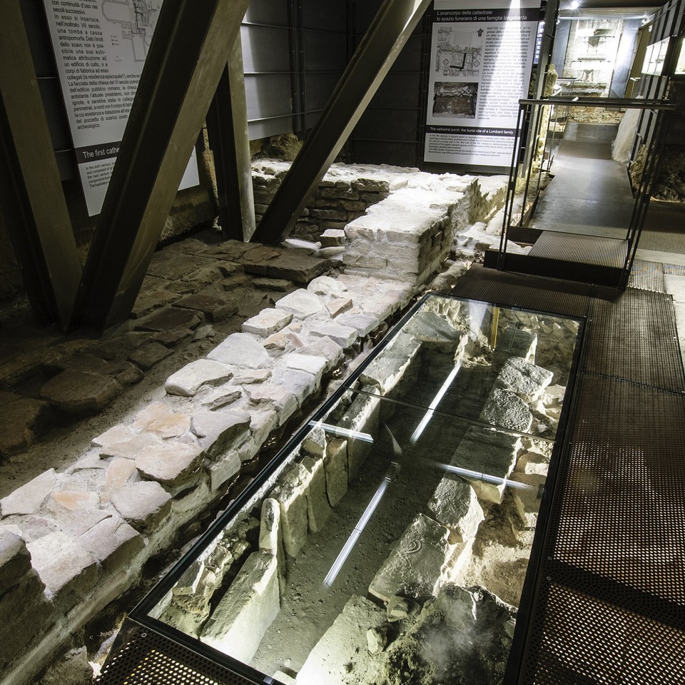 Il Museo consiste nel percorso archeologico corredato di apparato didattico e nelle sale espositive, Cripta di San Pietro e Sala dello Stemma, che accolgono resti dell’arredo liturgico altomedievale, il lapidario con reperti della Cattedrale romanica e gotica e di quella rinascimentale del vescovo Andrea Novelli.