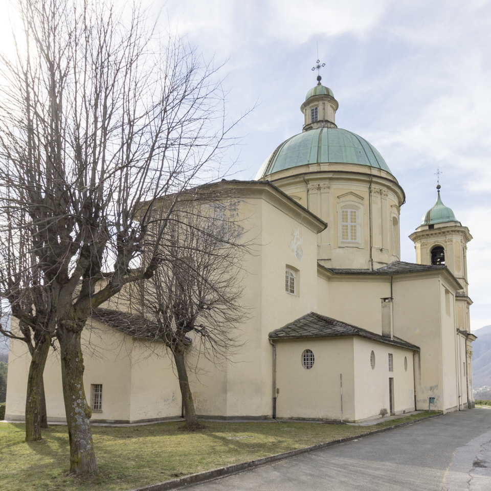 La chiesa antica doveva trovarsi presso la cosiddetta “casa del maggiordomo” di villa Piccon poi Agnelli. Poco più in alto, negli anni 1711/16 si costruì la chiesa attuale, una delle più belle e singolari di tutta la Diocesi. Fu eretta, come si è detto e come ricorda uno stemma posto sulla facciata, a spese di Vittorio Amedeo II, desideroso di affermare il suo predominio sulla valle, con il concorso dei vassalli della Val Perosa, i fratelli Francesco Giuseppe e Luigi Piccon, figli di un banchiere torinese e ricchi proprietari terrieri, a cui aveva conferito il titolo di conte. Nel 1759 la chiesa era ancora sussidiata dal governo regio, che l'anno seguente i Piccon cedettero il loro feudo a Giovanni Gamba di Maretto, la cui figlia Polissena sposerà il marchese Antonio Turinetti di Priero, unendo così i due casati.