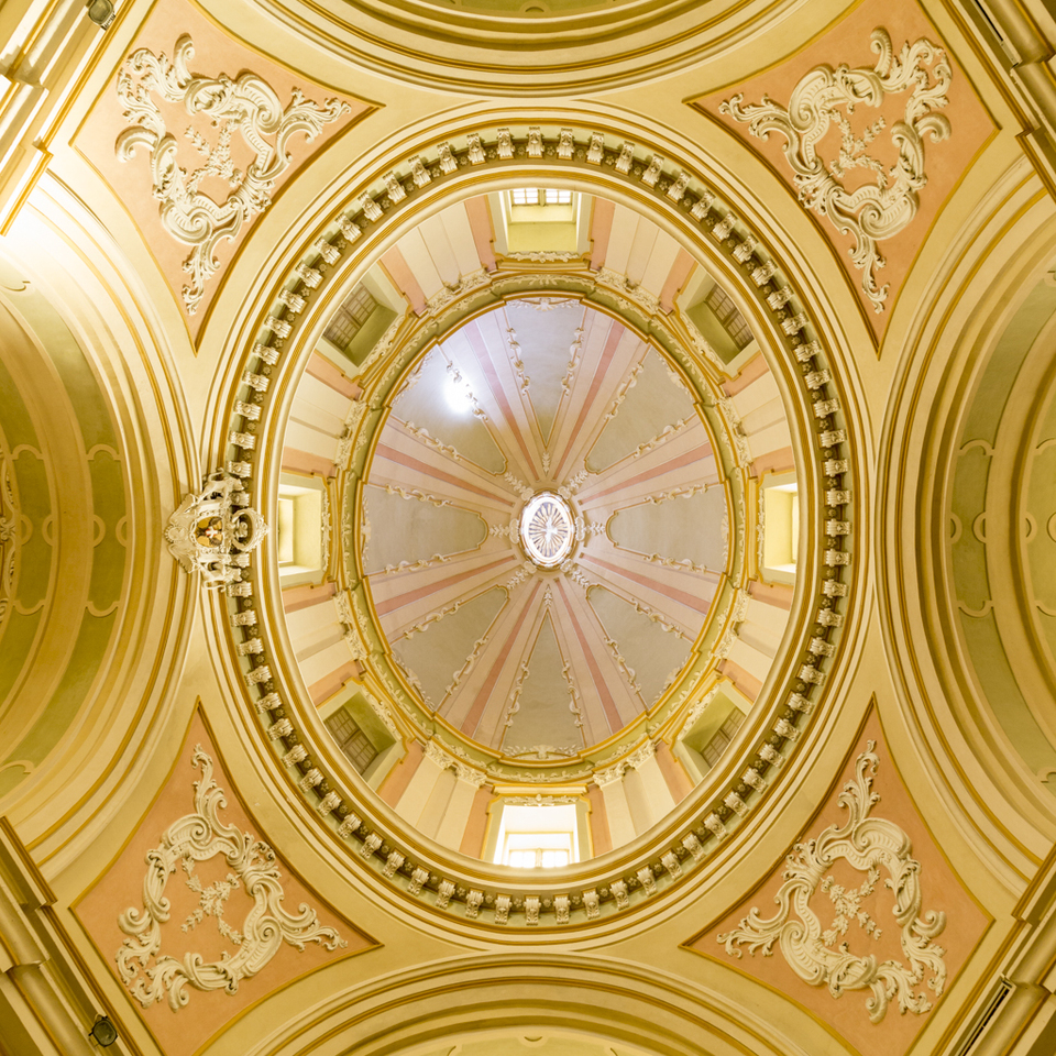 All'interno del cupolone centrale, all’altezza di 42 metri, si nota una colomba in legno con apertura alare di un metro e mezzo, simboleggiante lo Spirito Santo.