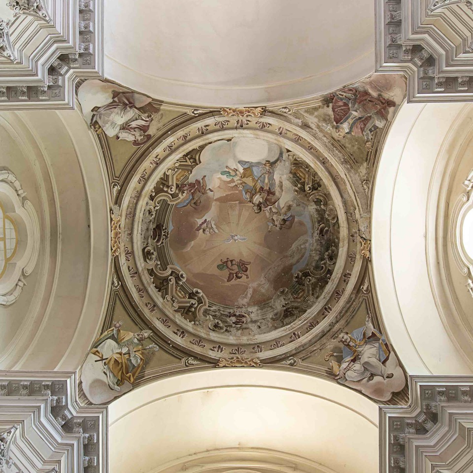 Le volte sono affrescate nel 1755 dal pittore astigiano Giuseppe Antonio Laveglia, con Lo Spirito Santo e angeli musicanti e la Gloria dello Spirito Santo e i quattro Dottori della Chiesa.