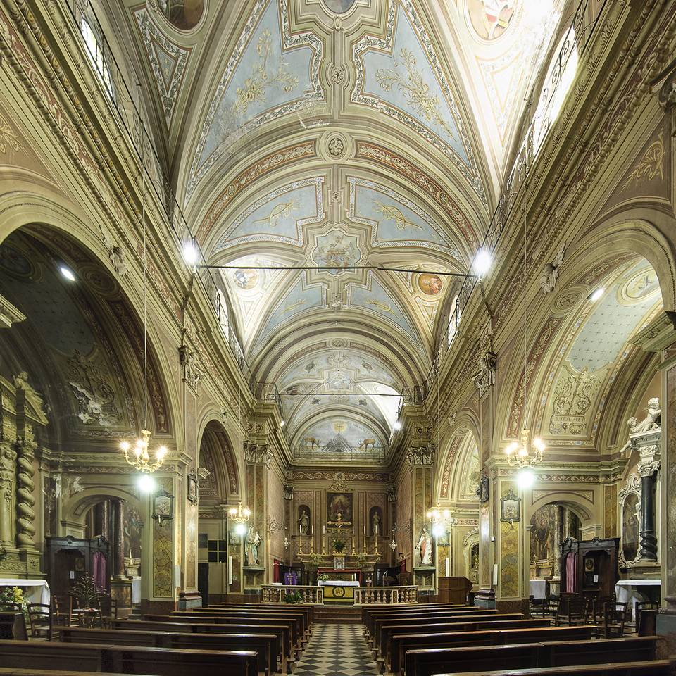 La chiesa viene ricostruita nella sede attuale a partire dal 1650 sotto la direzione dei mastri Carlo Pozzo e Giovanni Battista Tagliaferro. I lavori procedono celermente e nel giro di pochi anni la struttura viene completata, mentre gli altari e gli elementi decorativi vengono realizzati nel corso della seconda metà del medesimo secolo. Nel 1720 terminano i lavori di sopraelevazione della chiesa, mentre all’inizio dell’800 la chiesa trova il suo assetto definitivo con l’ampliamento della cappella di San Felice nella zona adiacente l’ingresso e la ricostruzione del muro di facciata dove si ricava una nicchia dove è inserito il fonte battesimale.