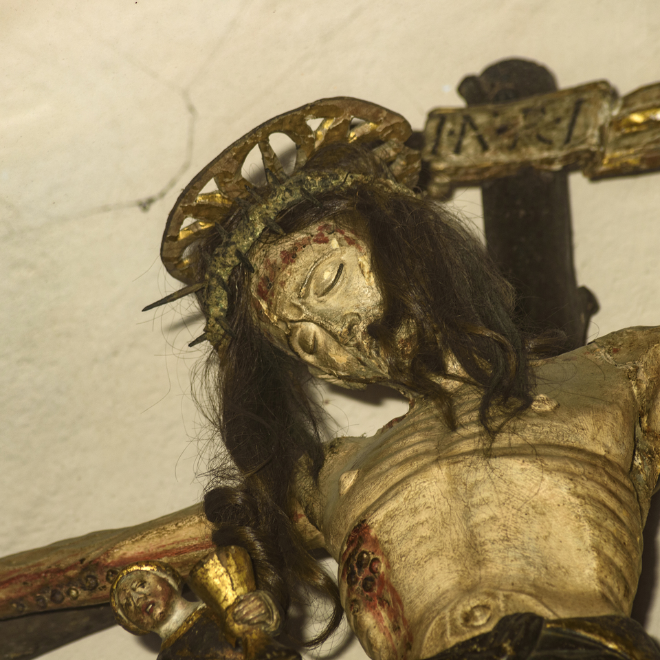 Esempio emblematico di devozione popolare è il crocifisso noto col nome dialettale de “Il Crist ed San Bernardin”. Si tratta di una scultura quattrocentesca che presenta un Cristo tracciato con un’anatomia approssimativa, ornato di veri capelli e contrito in una forte tensione emotiva, sottolineata non solo dai tratti del volto, ma anche dall’angelo in volo che, sollevando un rozzo calice, raccoglie il sangue che sgorga dalle ferite.