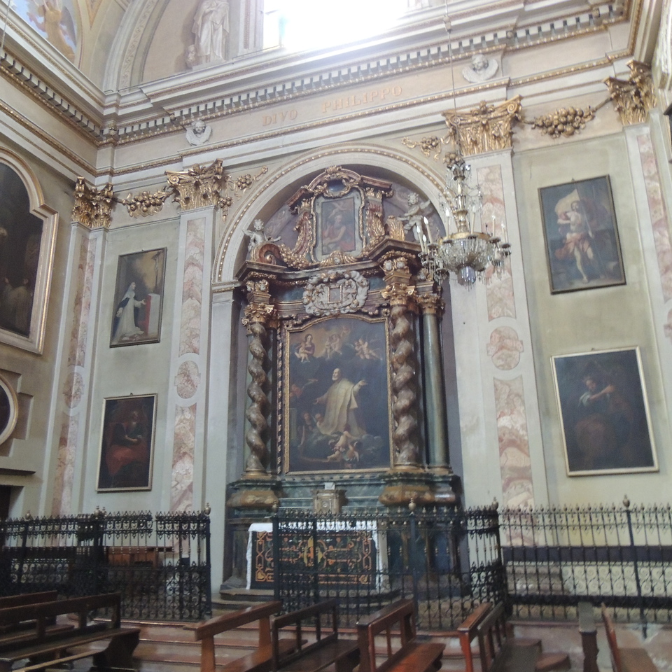 La Chiesa di S. Filippo sorge nel cuore della Città di Casale M.to, adiacente al complesso composto dall’Ex Seminario e dall’Oratorio di S. Filippo. La sua immagine esterna è tendenzialmente proiettata al neoclassico, con qualche reminiscenza del tardo barocco, a differenza del suo interno avente uno stile più propriamente barocco. L’ingresso, privo di sagrato e di sopraelevazioni rispetto al livello strada, porta alla bussola lignea che anticipa l’interno di grande impatto architettonico. L’interno voltato è ad aula unica, con impianto centrale e zona presbiteriale priva di coro a base rettangolare. L’illuminazione naturale è portata da quattro finestre per i quattro lati dell’aula, insieme ad altre otto aperture presenti nella cupola e due a mezza luna nel presbiterio. Ai lati del presbiterio vi sono due porte, una diretta verso la sacrestia e l’altra verso un ripostiglio. Il perimetro interno della chiesa è intervallato da cappelle voltate abbellite da monumentali confessionali lignei e da due altari minori artistici; questi ultimi insieme al presbiterio sono le uniche zone sopraelevate da tre gradini marmorei e racchiusi rispettivamente da cancelli ferrei e balaustra marmorea. Sul lato destro della chiesa si apre una cappella dedicata alla Madonna di Lourdes, ristrutturata recentemente e utilizzata anche dai ragazzi dell’Oratorio omonimo adiacente.