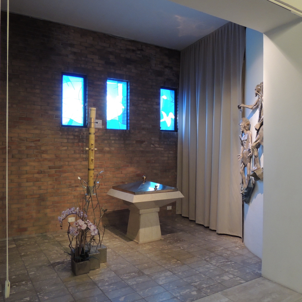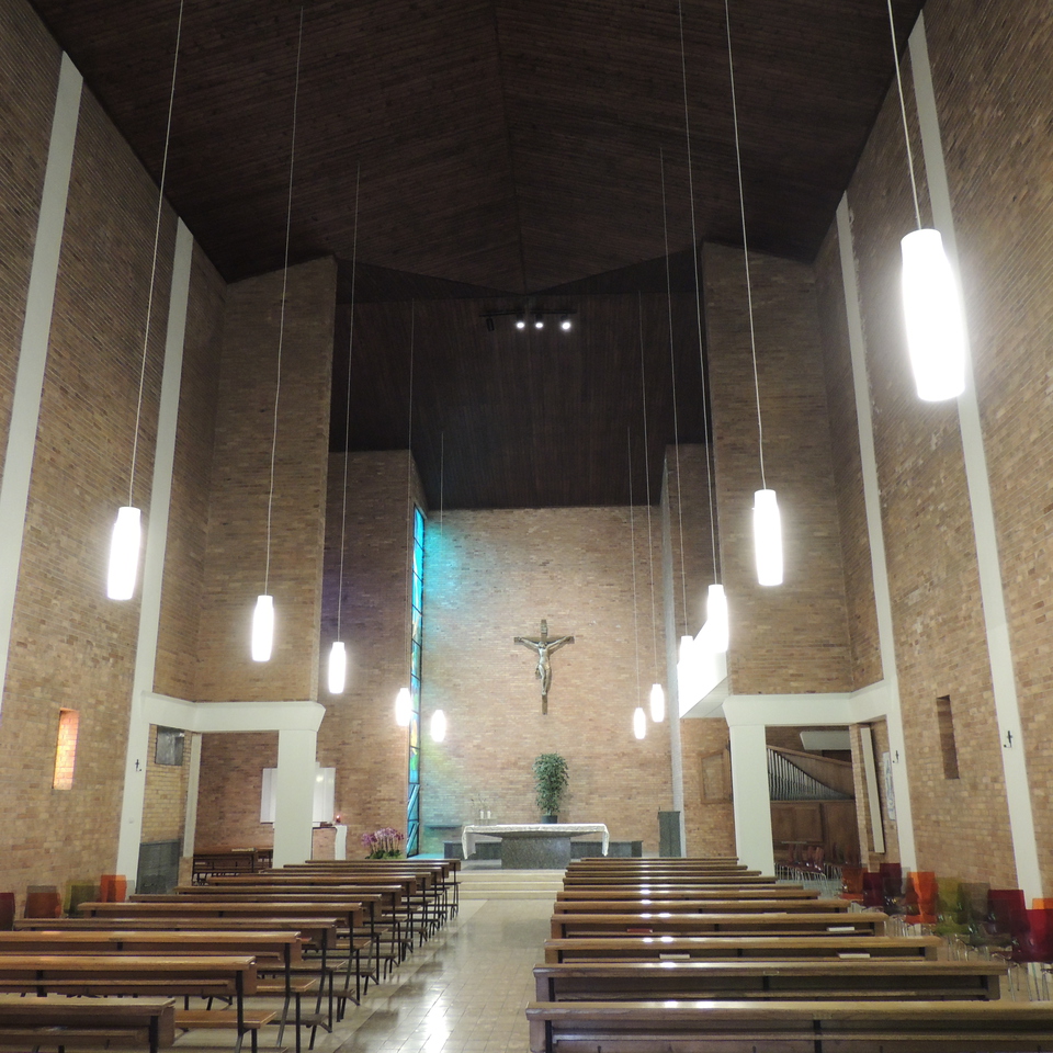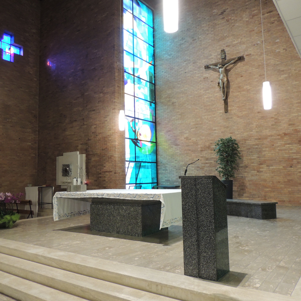 La Chiesa, sita in zona Oltreponte di Casale Monferrato, presenta una facciata molto semplice a capanna in mattoni a vista, due fasce laterali in cemento armato con bucature cruciformi e centralmente l'ingresso. La copertura è a capanna con struttura sempre in conglomerato cementizio. La facciata è anticipata da due scalinate convergenti. L’interno a croce latina anticipato da bussola lignea, è costituito da aula con larghezza pari alla facciata, presbiterio di sezione più ristretta e da orizzontamento a capanna con rivestimento ligneo. Viene rischiarata da luce naturale tramite le bucature cruciformi in facciata e una, sempre cruciforme posta sul corpo sinistro del transetto; a seguire da piccole bucature al lati dell'aula e da una fascia con vetro artistico sul lato sinistro del presbiterio. Di pregio artistico infatti queste vetrate sono di padre Costantino Ruggeri (Adro, 16 ottobre 1925 – Merate, 25 giugno 2007), che ha ridisegnato il Presbiterio con l’altare e il Tabernacolo del Santissimo; il battistero è di Luigi Bagna con le sue sculture ‘scavate’.