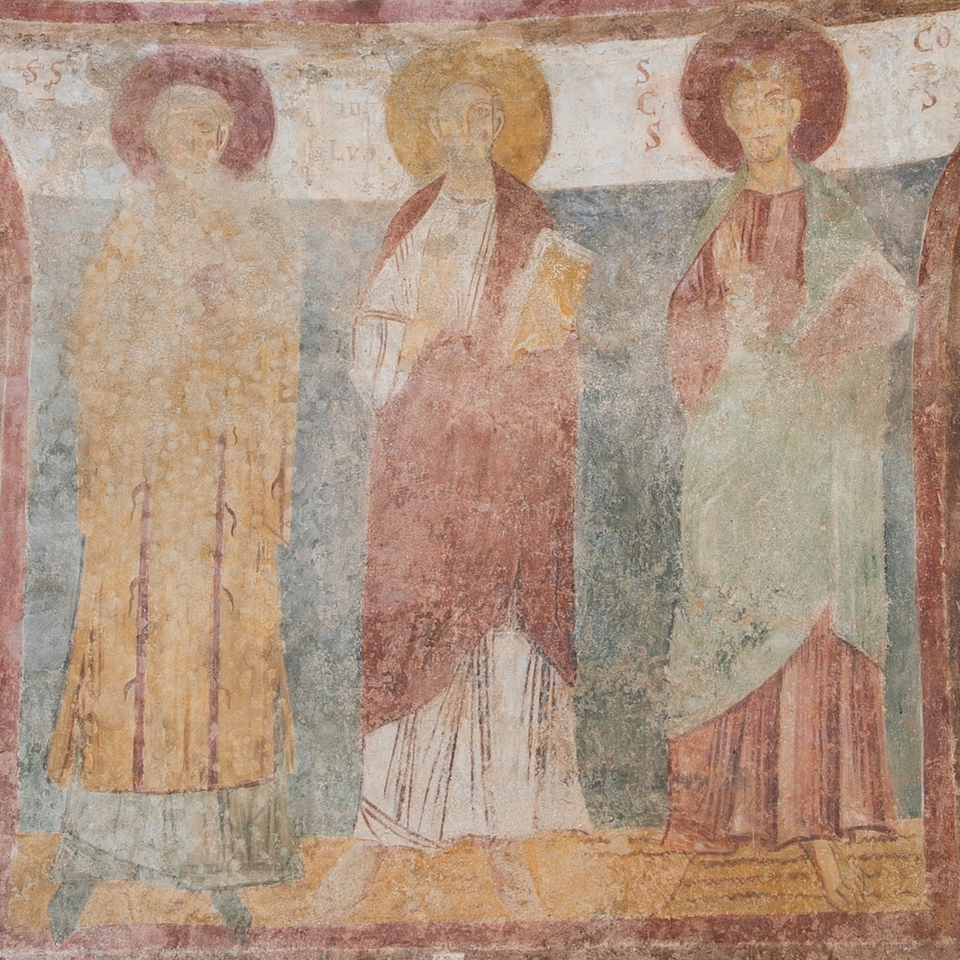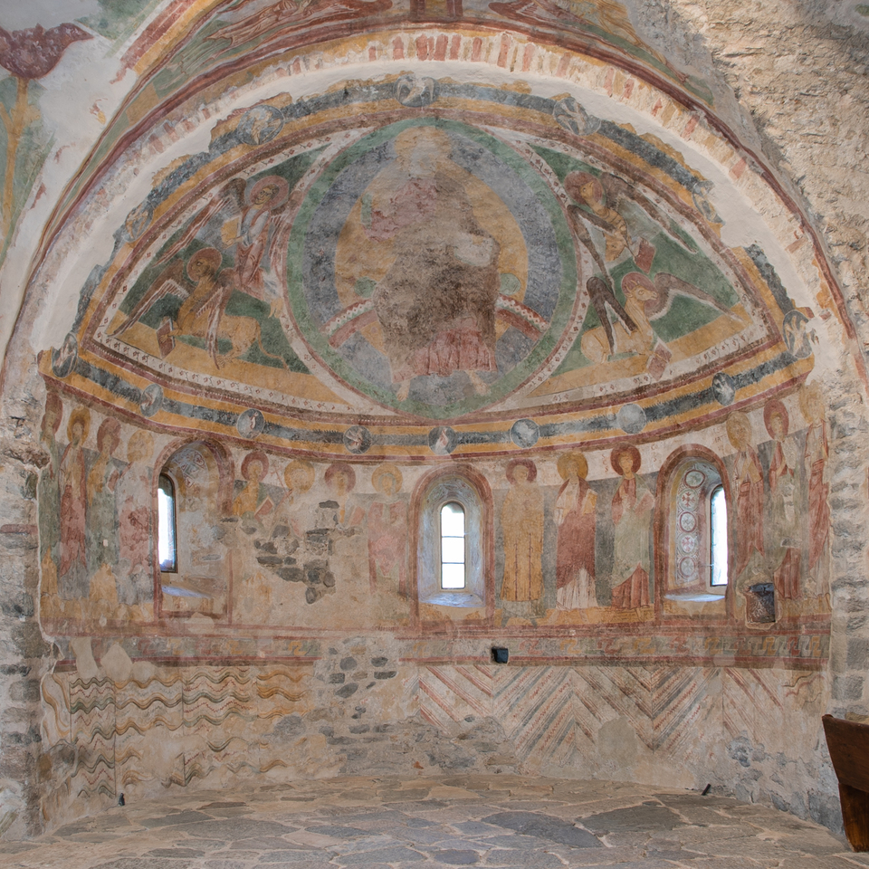 La decorazione dell’abside richiama schemi artistici e iconografici tipici della tarda antichità, dell’arte bizantina, che perdurano quasi immutati per secoli fino in epoca tardo-gotica.
