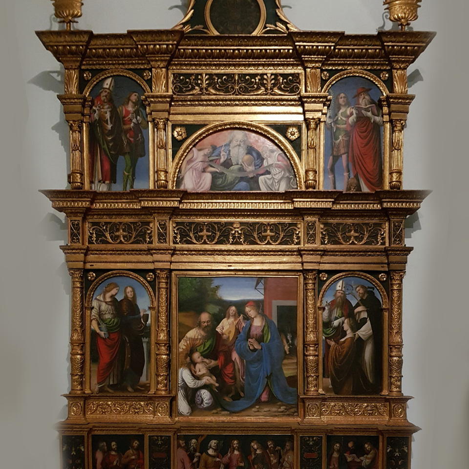Quindi, lungo la parete della navata sinistra, dopo la piccola porta che conduce nel quadriportico della canonica, si trova il polittico di Gaudenzio Ferrari (1511), l’opera d’arte più pregevole della Collegiata, un tempo nella cappella maggiore, e in seguito nella cappella degli Innocenti.