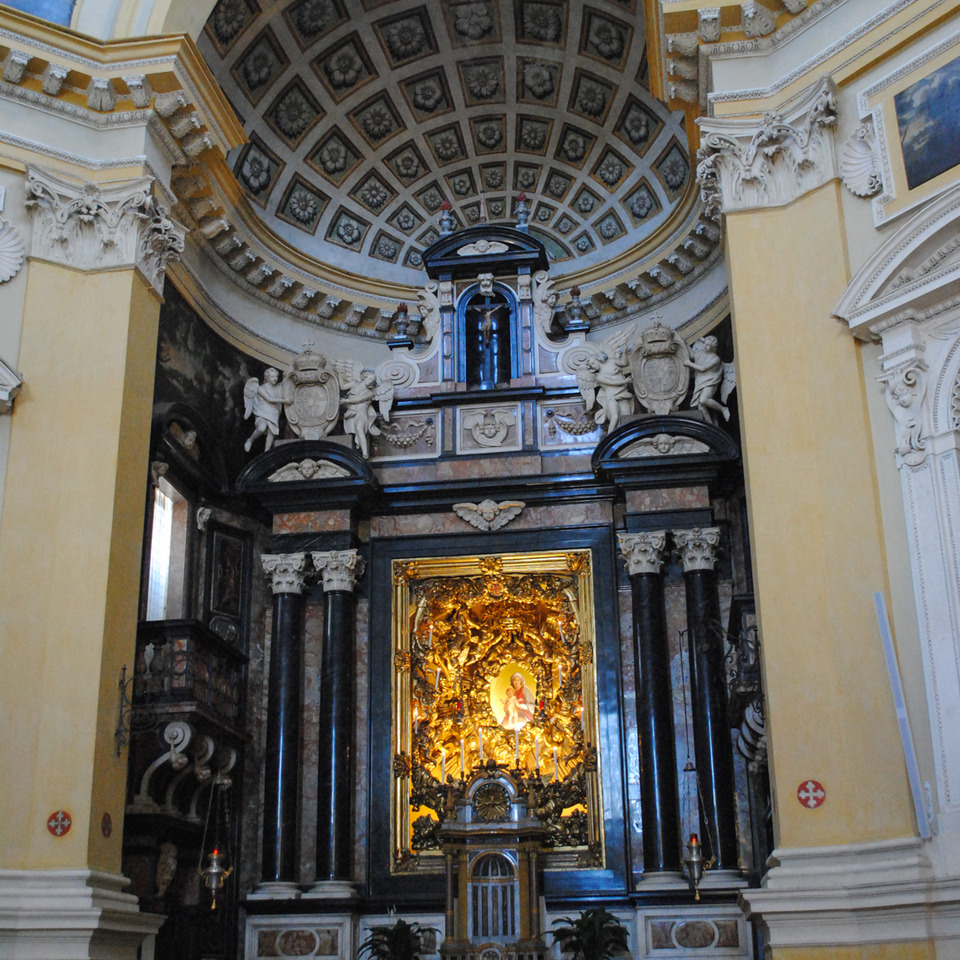 L'edificio è a pianta centrale a croce greca. La distribuzione di altezza crescente delle aperture, che dai fianchi giungono al prospetto principale, e la presenza di lesene sollevate su un alto stilobate assicurano l'effetto di slancio verticale. La cupola in origine era semisferica e ricoperta in piombo. All’interno la forte sporgenza degli otto pilastri che sorreggono l’alto tamburo ottagonale accentua l’effetto chiaroscurale; dal 1802 alla cupola è sostituita una copertura in muratura che riduce notevolmente il verticalismo caratterizzante il progetto di inizio Seicento e sottolineato all’esterno dall’altezza crescente delle aperture.