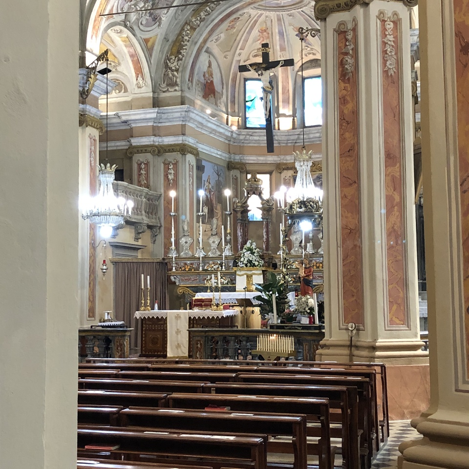 La chiesa si affaccia scenograficamente sulla Piazza San Martino con un’ampia scalinata; anticamente era denominata “Santa Maria Maggiore” e la sua presenza viene attestata già nel 1269. A quell’epoca aveva una semplice pianta rettangolare con la facciata rivolta verso il castello.