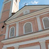 La facciata si sviluppa in altezza su due ordini coronati da un timpano triangolare. Sul fianco sinistro, la struttura muraria laterizia mostra ancora le antiche buche pontaie a vista.