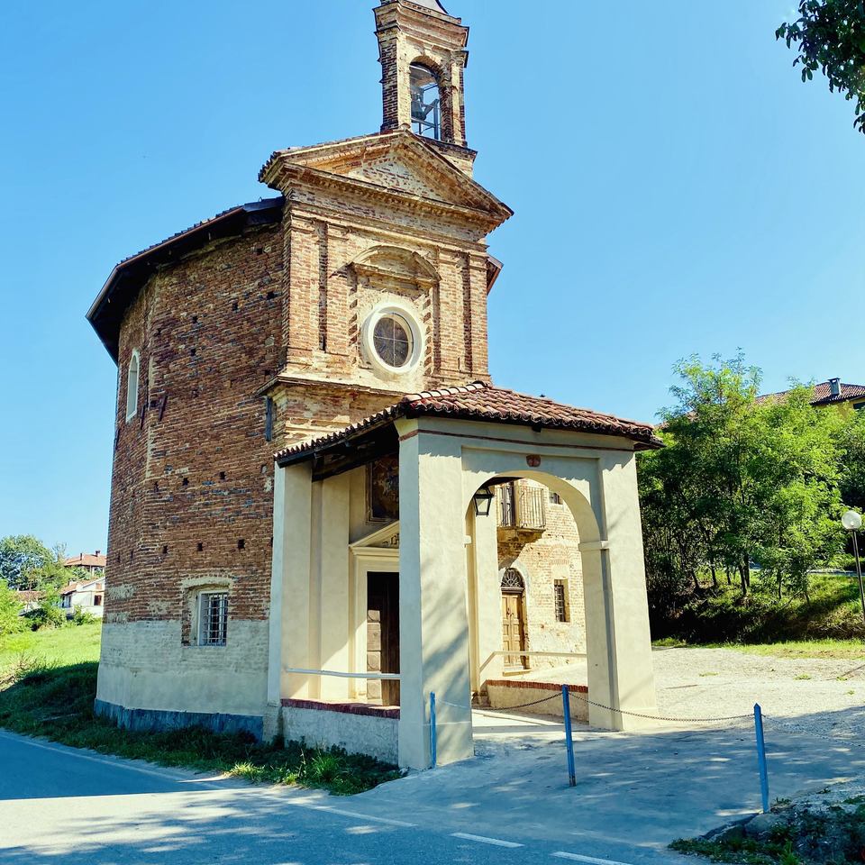 La prima notizia che attesta l’esistenza di un edificio sacro sull’antica strada Reale tra Fossano e Torino si data al 1728 tramite un verbale del Consiglio Comunale. Il complesso appare per la prima volta nel Catasto Sabaudo custodito all’Archivio di Stato di Torino del 1775. In questa carta però era solamente raffigurata la cappella a forma ottagonale, perché il portico antistante e la casa del sacrestano vennero edificati nel 1792.