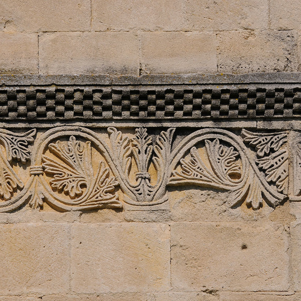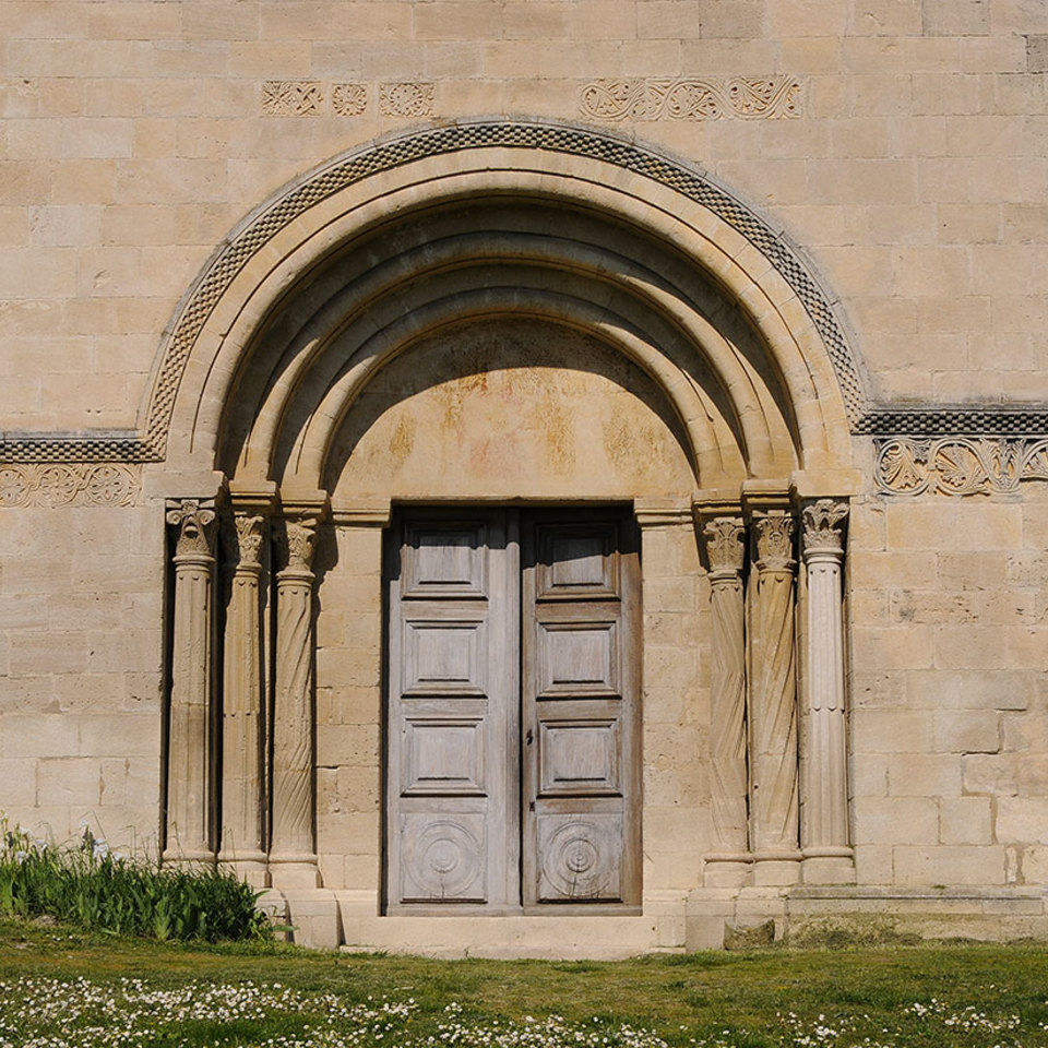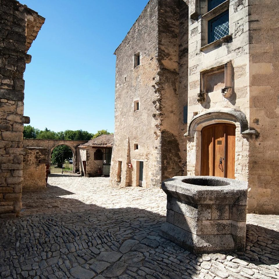 Una preziosa testimonianza del periodo medievale francese è racchiusa nella chiesa e nei giardini. Nella prima si osservano elementi architettonici e decorativi tipici dell'arte romanica provenzale; tra questi i pannelli scolpiti raffiguranti personaggi o figure di animali come la testa di un ariete o di un toro e maschere umane dalle sembianze spaventose. Inoltre, conserva nella navata principale una decorazione pittorica dell’inizio del XV secolo di grande interesse per la sua unicità.