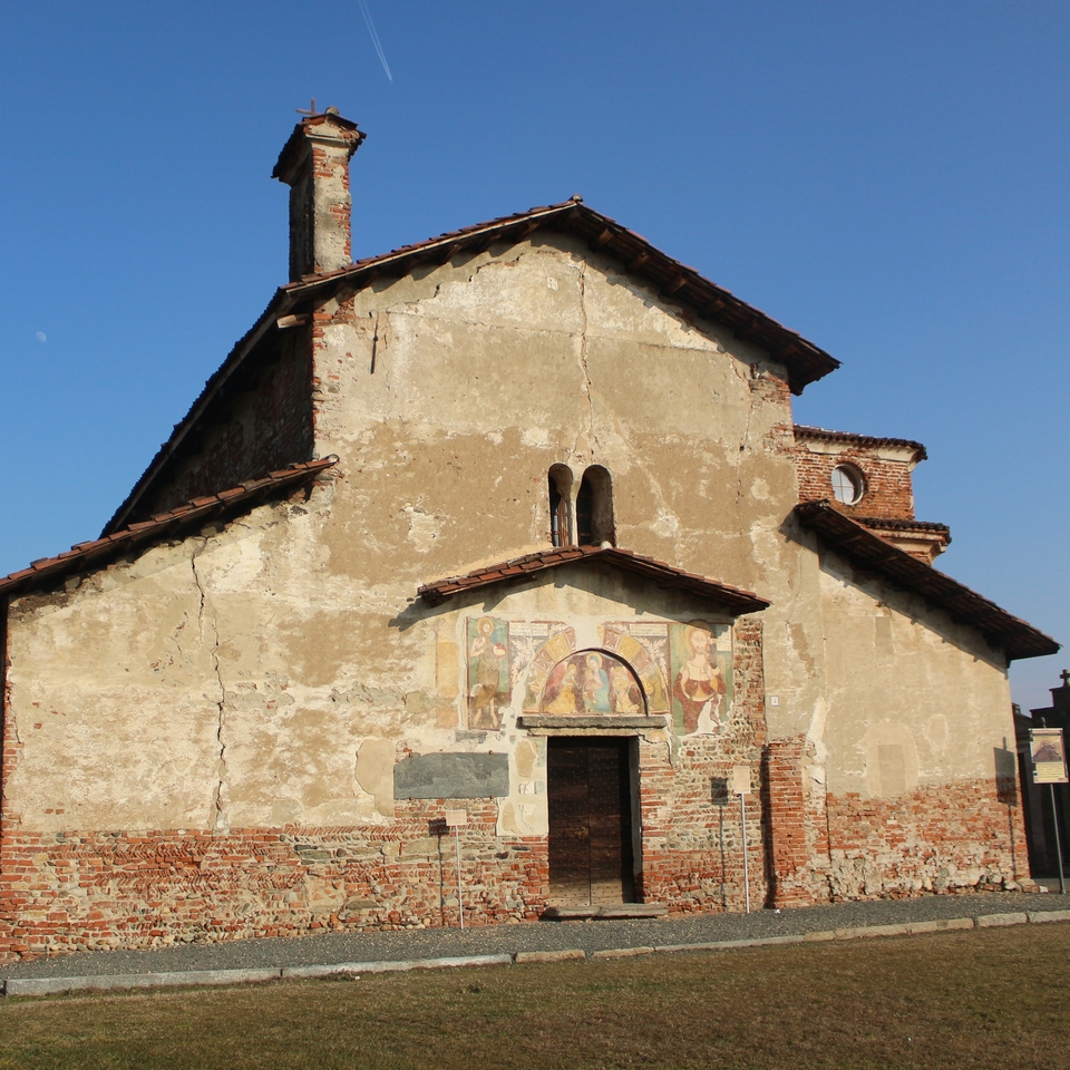 All’esterno della pieve, sopra il portale d’ingresso, si trova una lunetta affrescata nel 1359, con una lunga iscrizione in caratteri gotici: nell’ottobre di quell’anno, i coniugi Giovanni Pivart di Chamousset e Guglielmina, dedicarono questo affresco a san Giovanni di Piobesi e alla Vergine Maria.