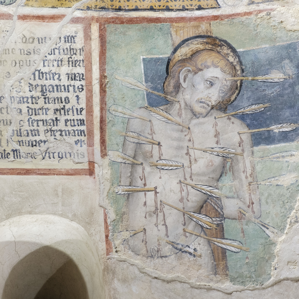 Seguono san Sebastiano, la Madonna del Latte e un gruppo di tre santi di cui si identifica al momento solo Valeriano.