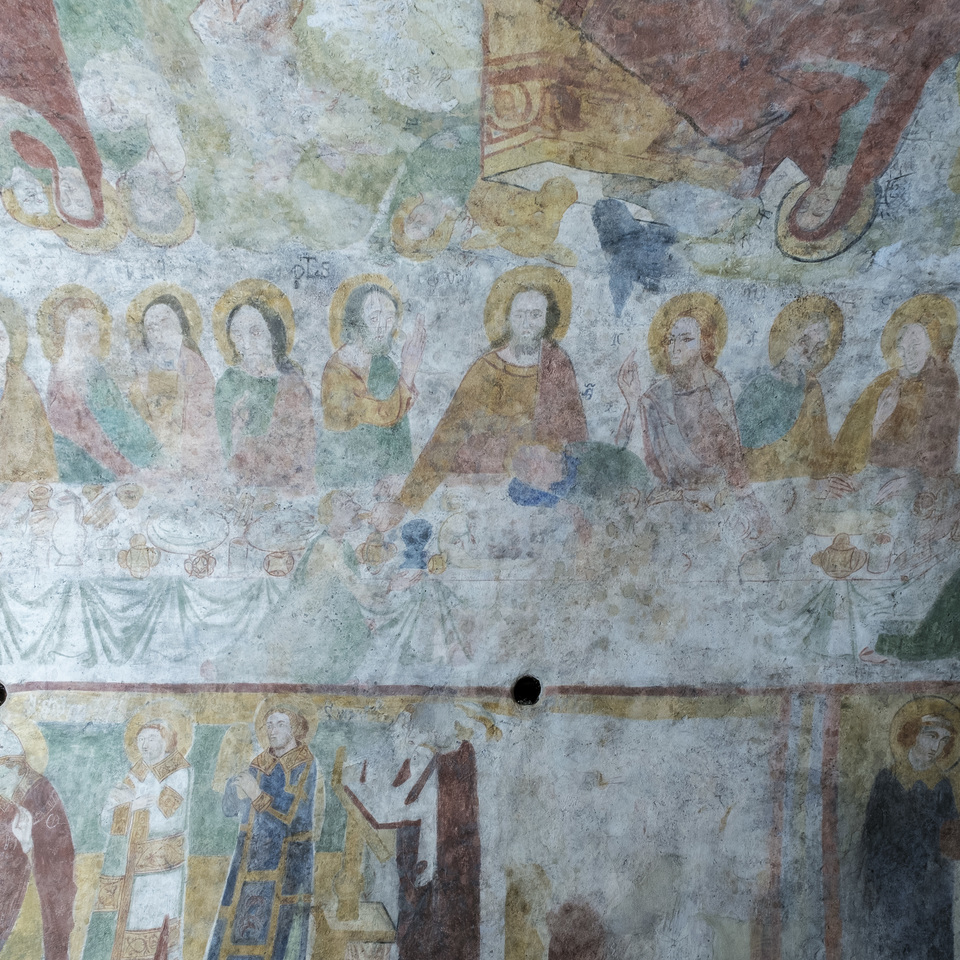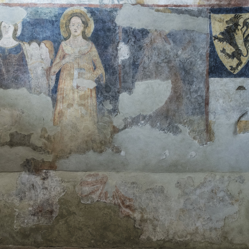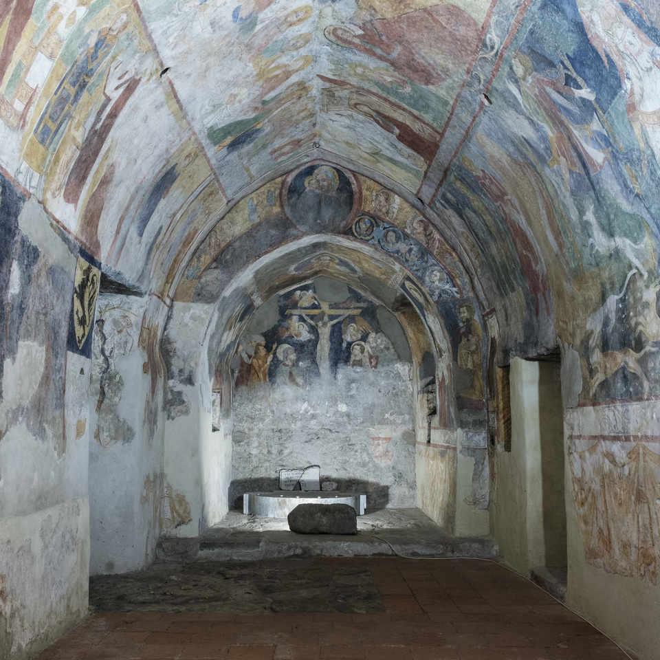 Gli affreschi sono stati realizzati da un artista locale, tra il 1330 e il 1350 che viene ricordato con il nome di “Pittore di Lorenzetto Bertrandi”.
