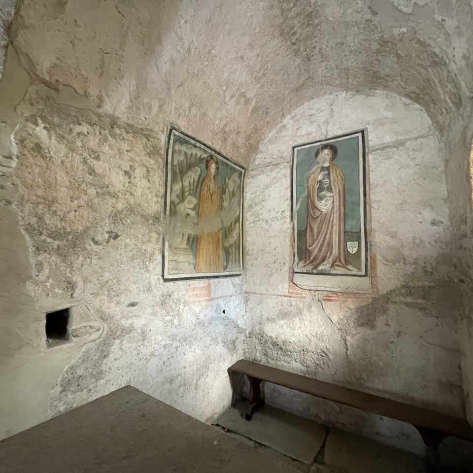 Sulla parete sinistra dell'abside di piccole dimensioni un altro riquadro affrescato sempre del sec XV dove è rappresentata Maria Egiziaca con le mani giunte in preghiera