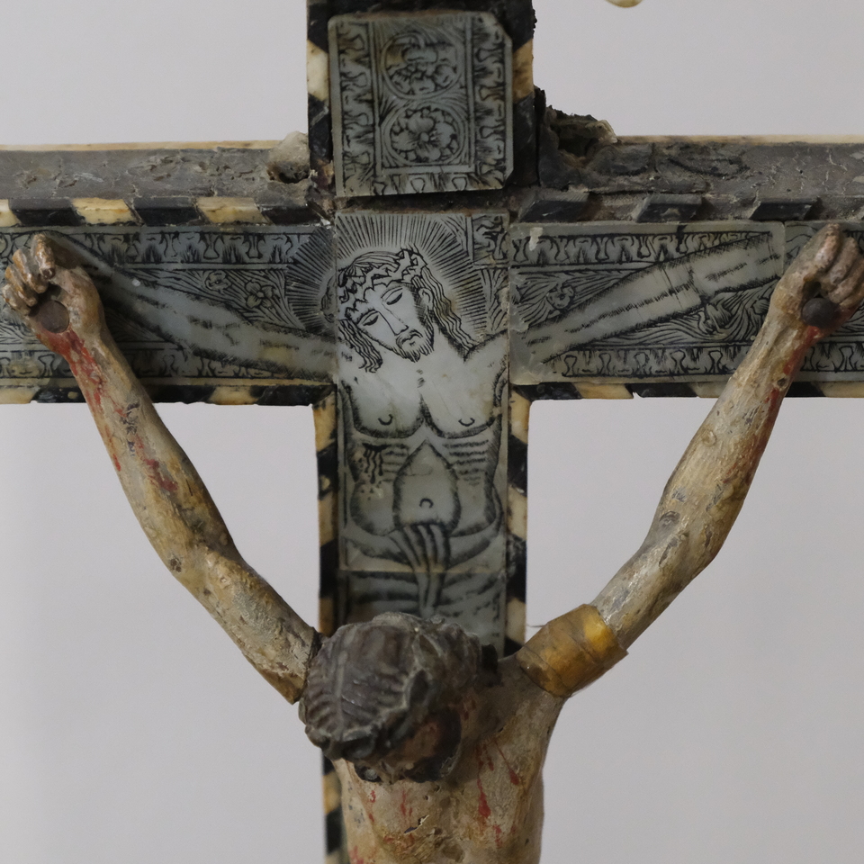 - La devozione e il culto: in questa prima sezione si è voluto presentare diverse tipologie di arredi utilizzati in passato in occasione di precise funzioni o festività. I due grandi troni processionali evocano la profonda devozione mariana da sempre molto sentita all’interno della parrocchia di Grana. Furono commissionati dalla due compagnie intitolate al culto mariano (la compagnia del Rosario e la compagnia dell’Addolorata) che si occuparono sia della cura delle cappelle sia del pagamento degli arredi mobili utilizzati per il trasporto della Statua della Vergine in occasione delle processioni. Simile nella forma, ma assai differente nella funzione è invece il tronetto eucaristico del quale ci si serviva per l’adorazione. Sempre legato alle processioni era, invece, il crocifisso appartenuto alla confraternita dell’Annunciata, mentre due oggetti oggi non più utilizzati, quali la settìa e il crotalo, caratterizzavano le funzioni della Settimana Santa.