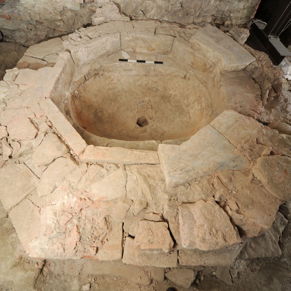 I portali romanici in pietra arenaria ci accolgono introducendoci nella Cattedrale. Nella prima cappella a sinistra troviamo il fonte battesimale, opera dell’architetto Ugo Della Piana (1991). E’ il luogo dove si diventa cristiani, si entra in comunione con Dio e a far parte della Chiesa Cattolica. Non è l’unico fonte... Al termine della navata il fonte battesimale paleocristiano (VI sec.).
