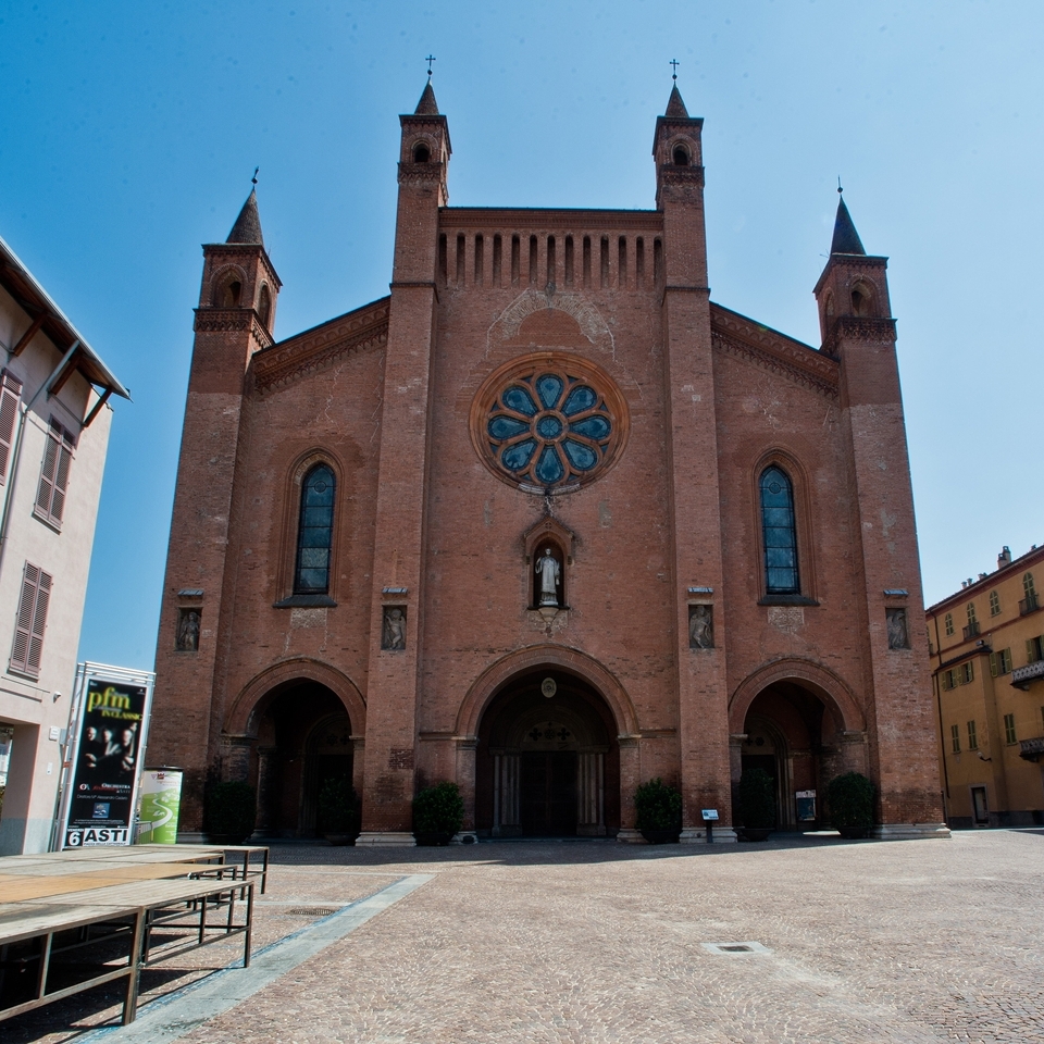 La Cattedrale sorge in corrispondenza del settore orientale del foro dell’antica città di Alba Pompeia, ove sono emerse poderose mura romane di un grande complesso edilizio pubblico. I resti di una struttura ottagonale, in fondo alla navata destra, segnano il luogo di prima edificazione del battistero raccordato mediante un atrio alla basilica paleocristiana (VI secolo ca.).