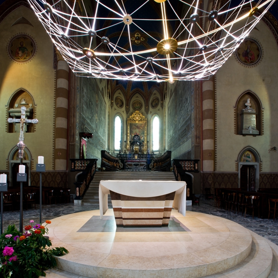 Nella navata centrale trovano posto i poli liturgici frutto dell’adeguamento attuato nel 2008: l’ambone, il luogo della proclamazione della Parola di Dio; l’altare, il luogo dell’Eucarestia, ove ogni domenica viene ripresentato il gesto del Pane e del Vino obbedendo al comando del Signore; la cattedra, il luogo della presidenza del Vescovo che guida la sua diocesi. Nell’antico presbiterio troviamo il monumentale altare barocco del 1712, opera del luganese Giuseppe Gaggini.