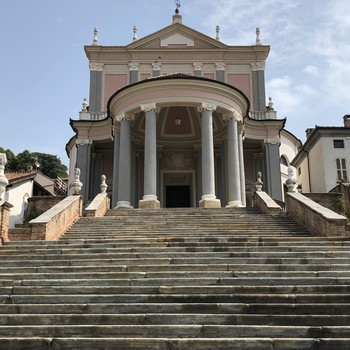 Una facciata barocca con una monumentale scalinata, un moro che batte le ore, una cupola particolare a forma ottagonale che inonda di luce.