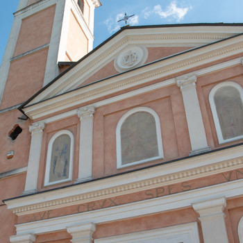 Sorge al centro del paese, affacciata su una piazza, come fulcro dell'espansione edilizia settecentesca ed è considerata il capolavoro dell'architetto torinese Bernardo Antonio Vittone, l'ultimo prestigioso esponente del barocco in Piemonte.